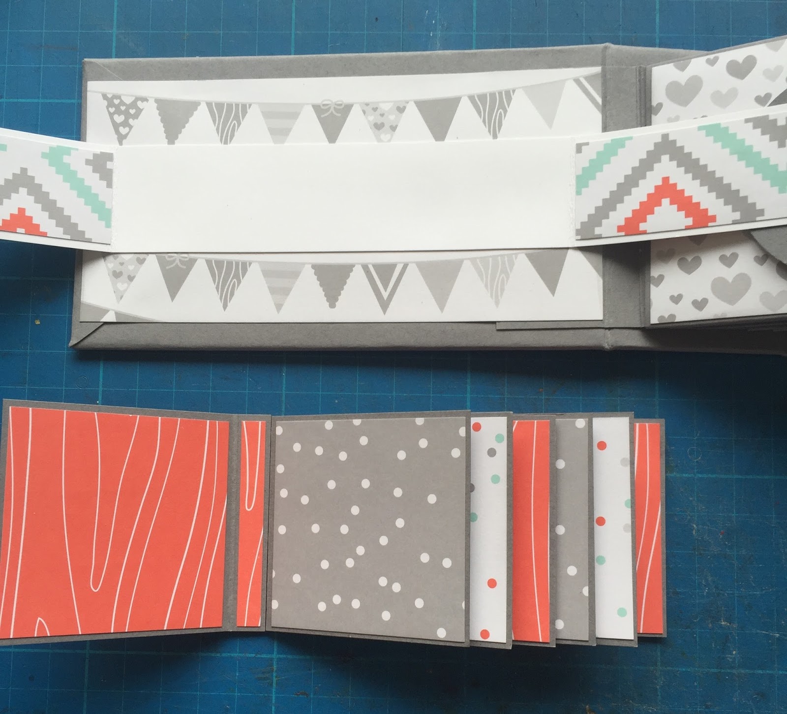 The inside front cover and if you open the belly band there is a waterfall booklet to add lots of photos.
